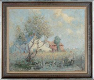 A Country Landscape With A House And Trees In The Distance