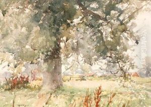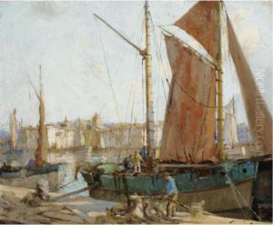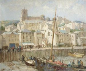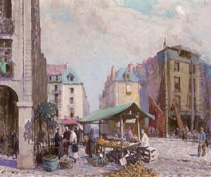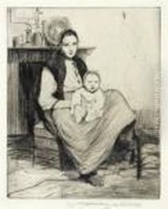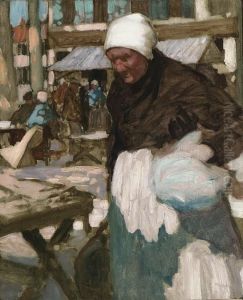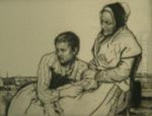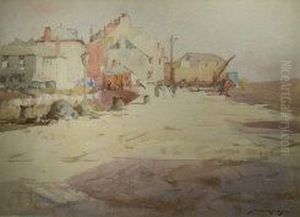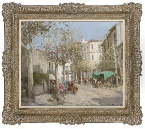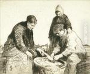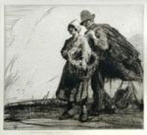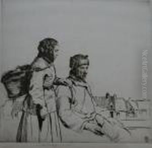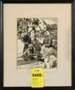 R.w.s., R.i., R.o.i., R.e., N.s. Market Place With Figures, Possibly Brittany Signed Artist's Proof, Black And White Drypoint Etching, 23cm By 25.5cm