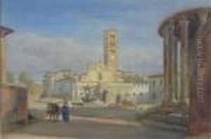 A Classical Coastal Landscape With Ruins And Figures In The Foreground