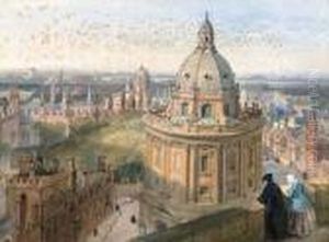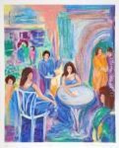 Figures Before A Cottage Looking Out To A Valley Beyond