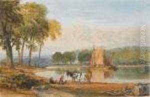 Figures In A Tranquil River Landscape With Sailing Vessels