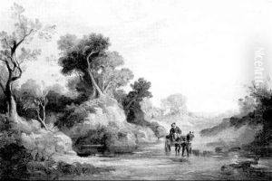 A Drover With His Cattle By The Clyde, Dumbarton Rock Beyond