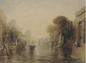 An Italianate Landscape, With Peasants And Livestock In Theforeground