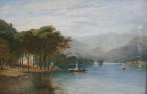 North Italian Lake Scene With Villas And Snow Capped Mountains