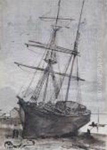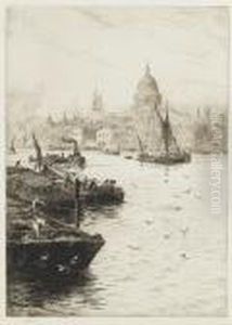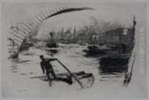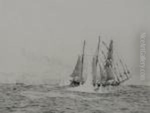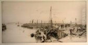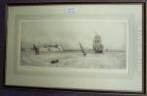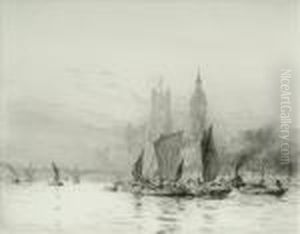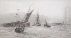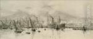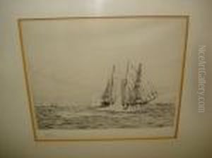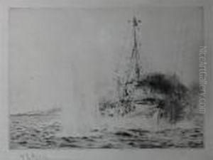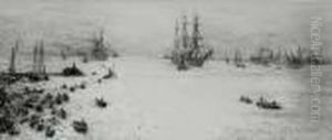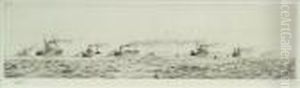 A Wartime Convoy Of Merchant Ships - Drypoint Etching