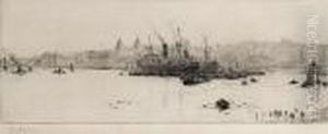 A North African Fortified Town, Withbattlecruisers In The Distance