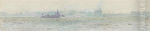 Boats In A Harbour, Steamship Being Tugged In
