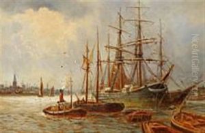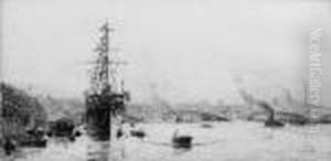 Harbour Scene With Anchoring Ships