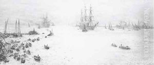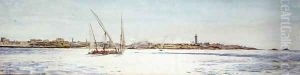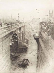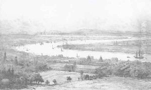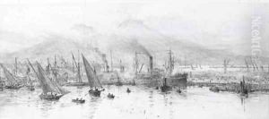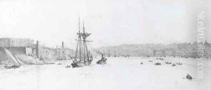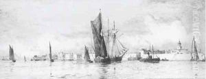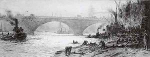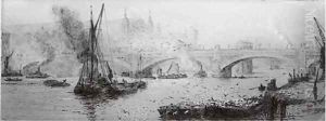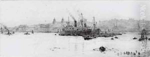 Tugs and barges on the Thames before St. Paul's Cathedral