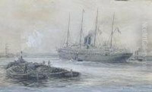 The Medina River At Cowes In The 1920's With The Steam Yacht 'liberty' And Tall Ship 'fantome' Docked At The Harbour