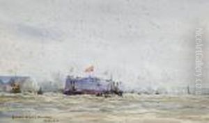 Dinghies Racing On The Medina At Cowes With The Steam Yacht