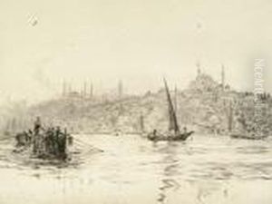 A North African Fortified Town, Withbattlecruisers In The Distance