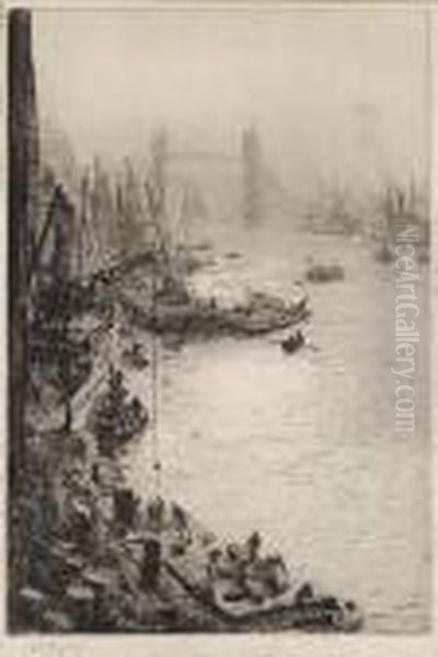 Work On The Thames, With Tower Bridgebeyond
