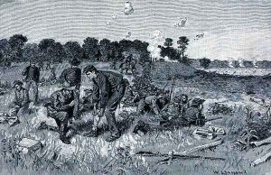Citizens of Richmond in Capitol Square during the conflagration, illustration from Battles and Leaders of the Civil War, edited by Robert Underwood Johnson and Clarence Clough Buel
