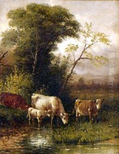 Cattle Watering By A Stream