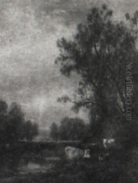 Cows Watering In A Stream