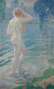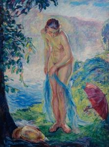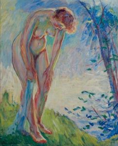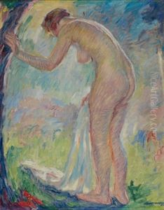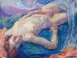 Femme Nue Allongee De Profil (toile Fond A Dominante Rose)
