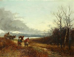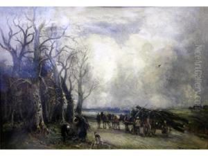 Figures, Horse And Cart With Dog In Windswept Landscape