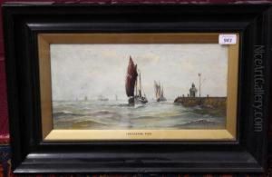 Norfolk Coastal Scene With Figures And Yarmouth Boats