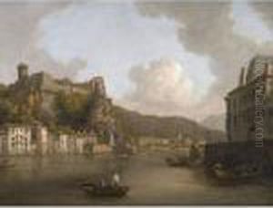 View Of The Coast Near Naples, With Figures In Rowing Boats In The Foreground