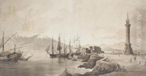 Shipping In The Bay Of Naples With The Old Molo, Vesuvius