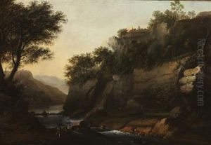 A River Landscape With Travelers