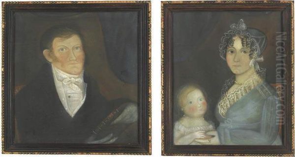 A Pair Of Portraits: A Gentleman And A Lady And Their Child Holding A Peach: Members Of The Aldrich Family Of Massachusetts