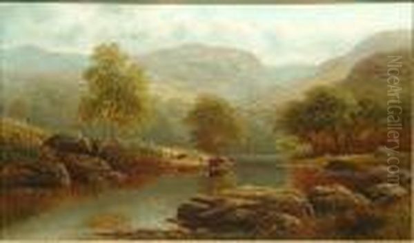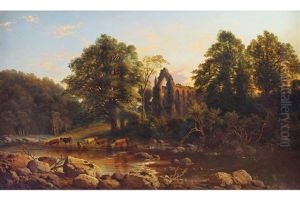 A River Landscape With Cattle Watering, Possibly On The Wharfe; A Lakeland Landscape