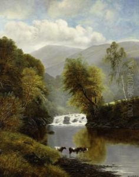 Mountainous Landscape With Cattle And A Waterfall