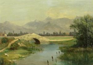 River Landscape With Bridge