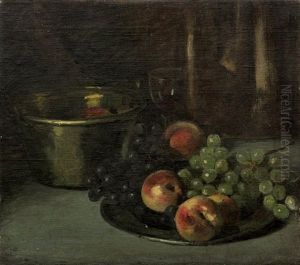 Still Life With China Vase, Copper Pot, An Apple And A Bunch Of Grapes