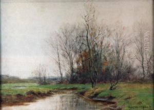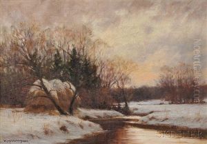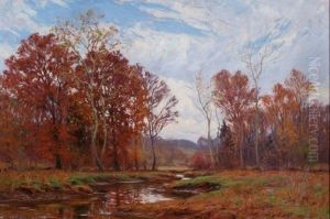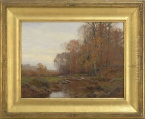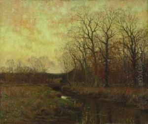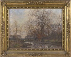 William Merritt Post was an American painter known for his tonalist landscapes that often depicted the serene countryside of the northeastern United States. Born on July 2, 1856, in Brooklyn, New York, Post developed an interest in art at an early age. He studied under the artist James Carroll Beckwith, a student of the famed French artist Jean-Léon Gérôme. Post's early work was influenced by the Hudson River School, but he eventually became associated with the Tonalism movement, which emphasized mood and atmosphere in painting.
