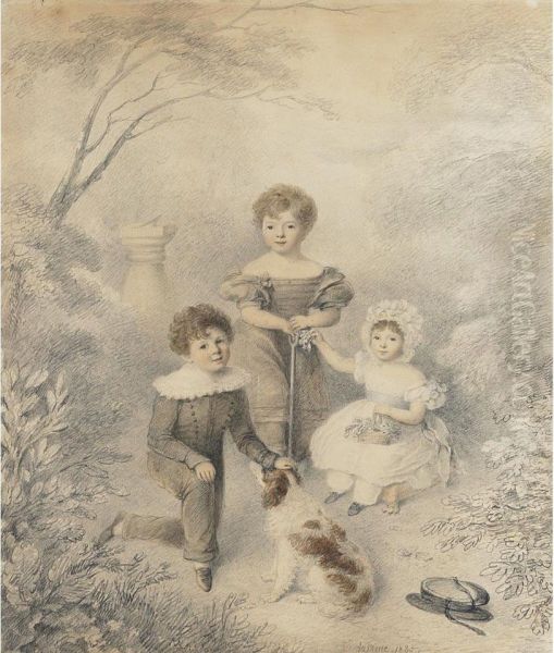 A Family Of Children And Their Dog In A Landscape