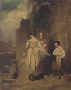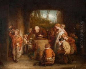 Ein Alterer Herr Ermahnt Drei Jungen, Die Zwei Korbe Mit Kirschen Gepfluckt Haben