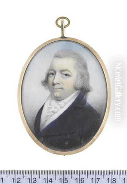 A Gentleman, Wearing Blue Coat, White Waistcoat, Stock And Cravat, His Hair Powdered