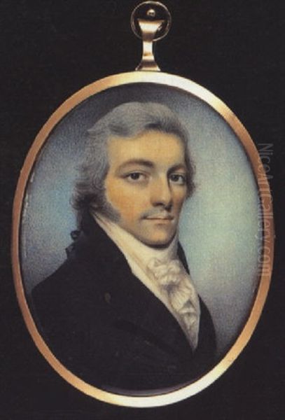 A Gentleman Wearing Dark Brown Coat With Black Collar, White Waistcoat, Tied Stock And Frilled Cravat, His Hair Powdered And En Queue