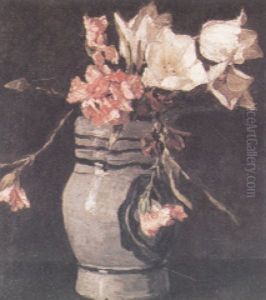 Tulips And Pinks In An Earthenware Vase