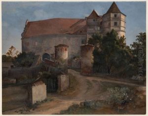 View Of Hilltop Fort, Figures On A Bridge In The Foreground