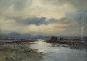 Dusk Falling Over A Western Lake Landscape With Heather Bog