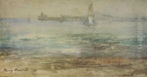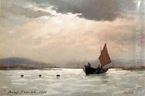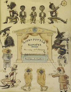 Self Portrait Showing Percy French With His Suitcase & Banjo And A Railway Man