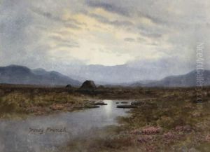 A Flooded Peat Bog With Mountains In The Distance, Connemara