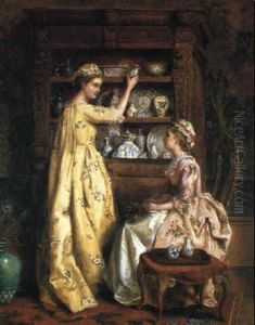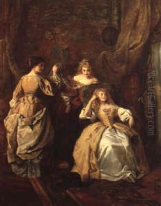 Three Ladies Admiring A Porcelain Figurine