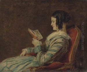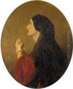Study Of A Girl, Half Length In A White Dresswith Blue Striped Sleeves And A Black Lace Scarf