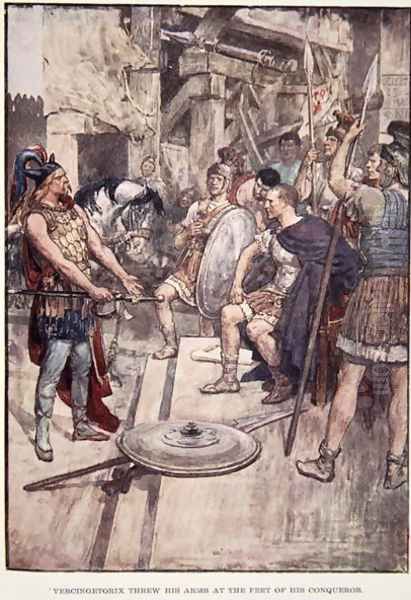 Vercingetorix Threw his Arms at the Feet of his Conquerors, plate from The Story of France by Mary MacGregor, 1920