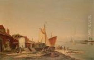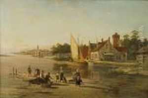 Fishing Scenes On The Scheldt: Fisherfolk Awaiting The Arrival Of The Day""""s Catch; Family Sorting The Catch