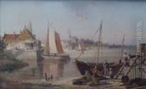 A Viewof Flushing, With Fisherman And Nets In The Foreground