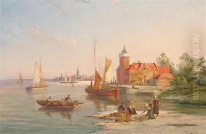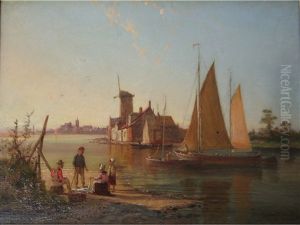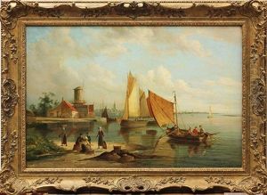 Fisherfolk At The Water's Edge On A Still Day