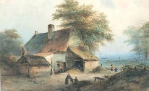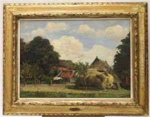 A Stream With Haystacks And Farm Buildings Beyond
