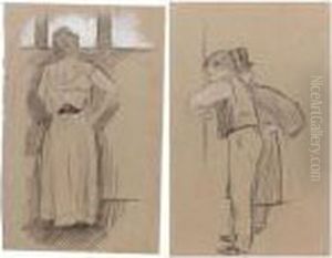 Two Drawings, Both Charcoal And White Chalk, Both Unframed