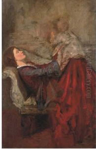 Portrait Of Ida Nettleship (1877-1907), Half-length, In A Burgundy Dress And Hat
